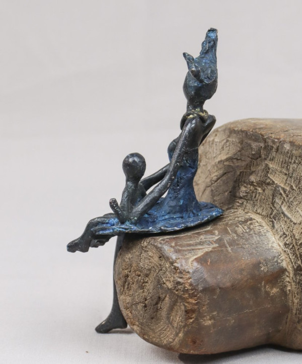 Bronze réalisé par un grand artiste de Ouagadougou selon l'antique procédé de la cire perdue (donc pièce unique). La statue est bien sûr vendue sans le support, qui n'est pas compris dans le prix.