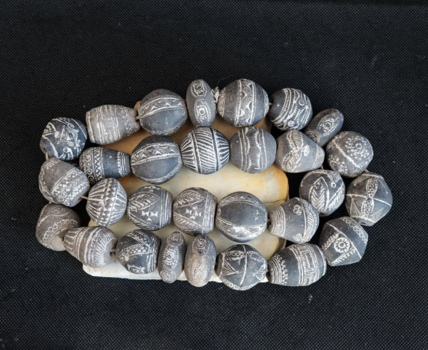 Fusaïoles provenant de la région de Djenné au Mali. Une fusaïole est un anneau lourd servant de volant d'inertie aux fuseaux des fileuses."