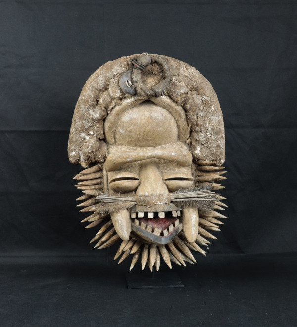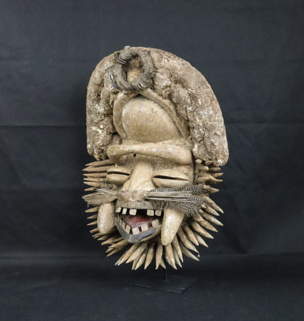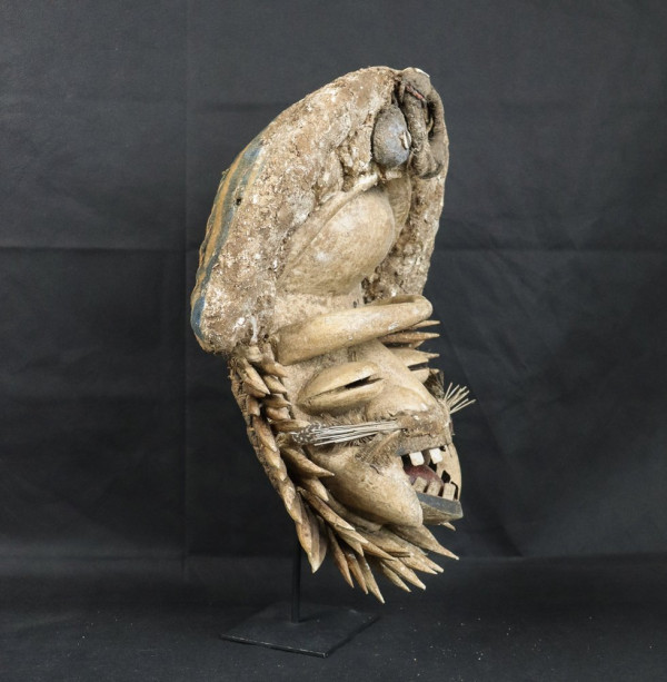 Rare masque imposant qui a vraiment dansé. Ce masque est appelé "masque de la sagesse" et danse en premier lors d'une sortie des masques. Vendu sans socle.