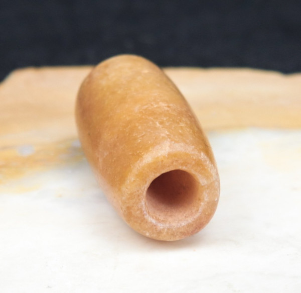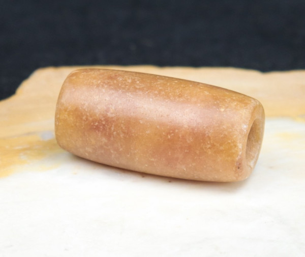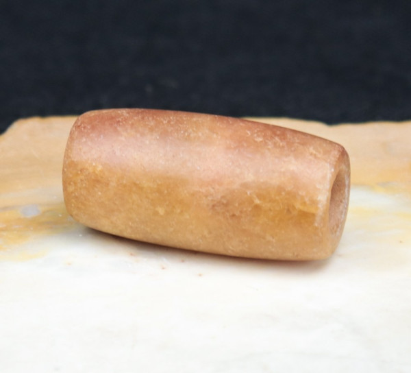 Magnifique perle (Calcite ?) de plusieurs milliers d'années collectée au Mali. Trous biconiques.