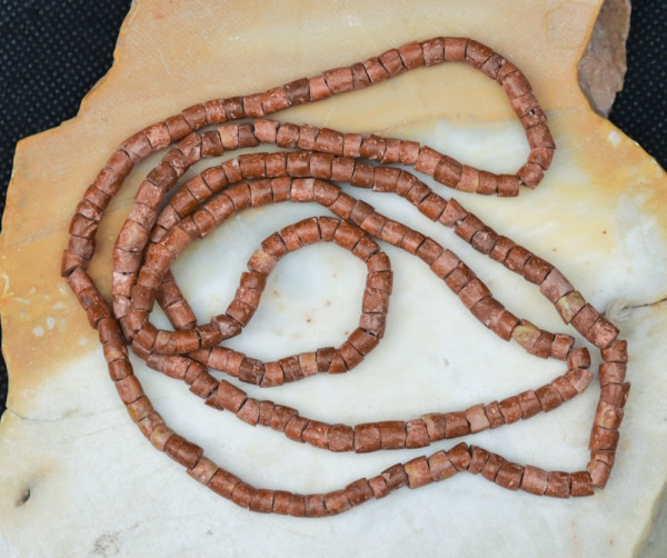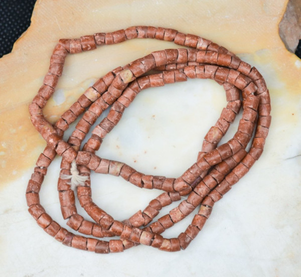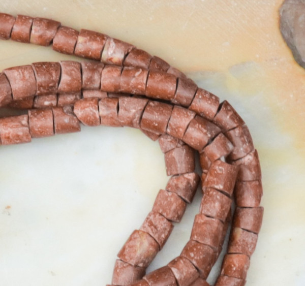 La bauxite est un minerai d’aluminium. Les perles africaines en bauxite sont toutes fabriquées et percées à la main, ce qui représente un gros travail. Ces perles sont importées d’Afrique depuis longtemps. Elles sont réputées pour leur couleur et leur texture uniques.