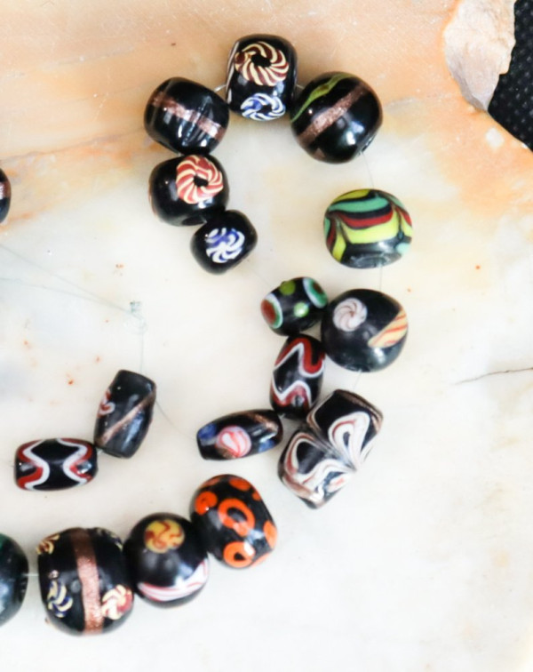 Dimensions Diamètre des perles = 6.5mm à 13.5mm; longueur du fil = 24cm.