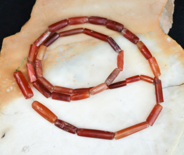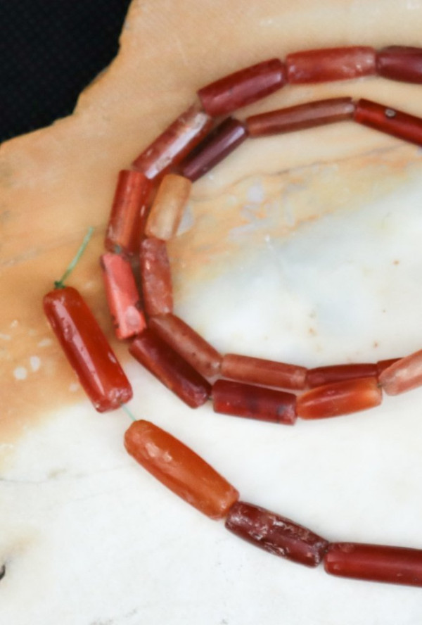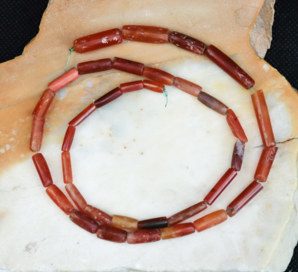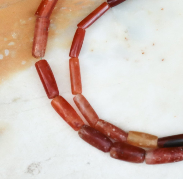 Fil de 36 perles tubulaires en cornaline