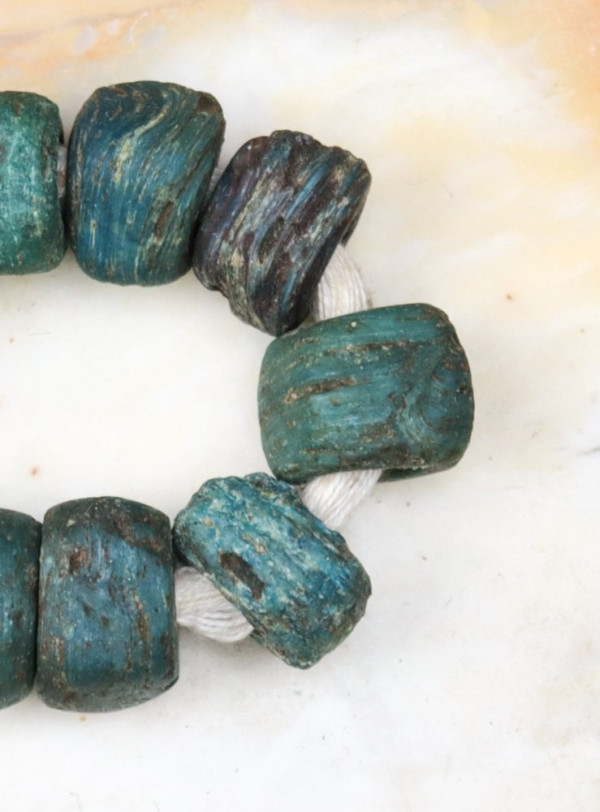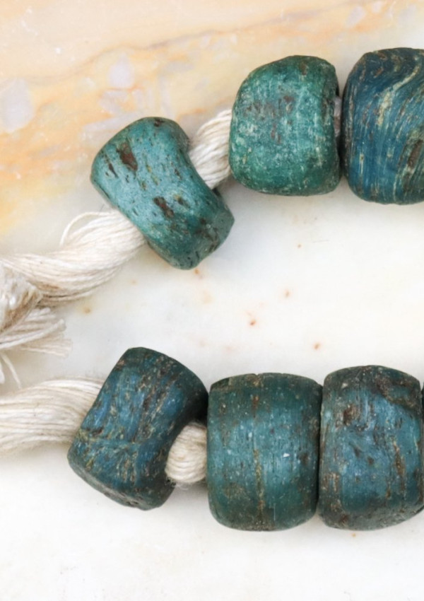 Les perles d'Hébron sont ainsi nommées pour avoir été fabriqués à partir du 12ème siècle jusqu’en 1880 environ à Hébron, près de Jérusalem, en utilisant des sels de la Mer Morte comme alcalin.